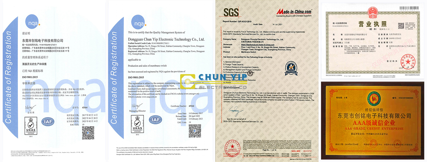 公司已通過ISO9001:2015質量管理體系認證,SGS認證,AAA級信用企業。我們為全球客戶提供電容和電阻薄膜開關及按鍵面貼、觸摸薄膜開關、硅橡膠按鍵、薄膜面板、PCB集成電路和FPC組合式薄膜開關,以及提供OEM和ODM薄膜開關系列產品的整體解決方案!