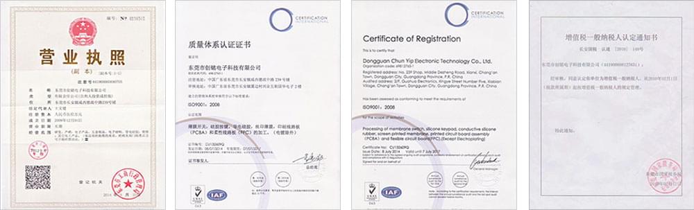 創銘一直注重薄膜開關的使用材質、產品品質、按鍵壽命、生產交期等等,發展期間2016年創銘電子獲得“中國AAA級誠信企業”榮譽證書和“重合同守信用示范企業”榮譽證書;同年注冊‘創銘’‘chunyip’等商標;足以表明創銘電子對客戶的重視程度,對品質要求的嚴格,對創銘這個品牌的信譽做保護。
